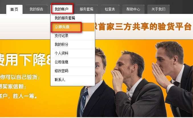 登录后,把鼠标移到顶部菜单中的“我的账户”,弹出菜单后点击“立即充值”。