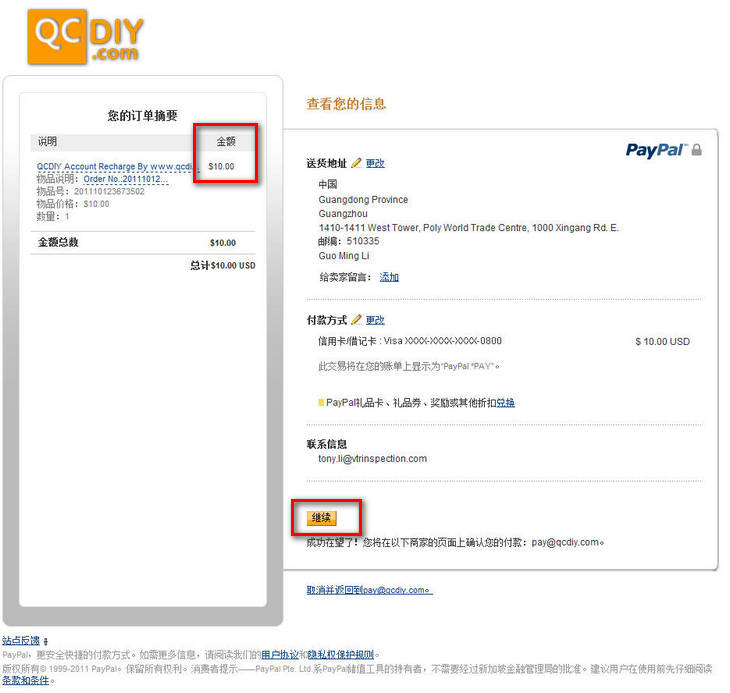 登录后,确认金额正确后,点击“继续”,完成操作。