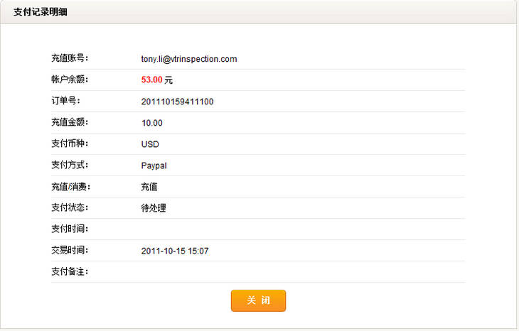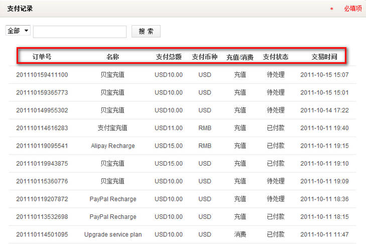 页面记录了账户项下的所有充值与消费记录。