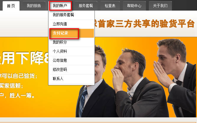 登录后,把鼠标移到顶部菜单中的“我的账户”,弹出菜单后点击“支付记录”。