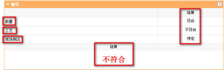 模板分为九大部分,概要、概览、备注、数量、工艺、现场测试、照片、附件和声明。