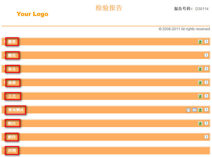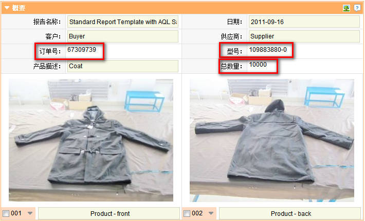 概要中主要填写报告的基本信息,其中订单号、型号和总数量的内容将根据数量部分自动填写。