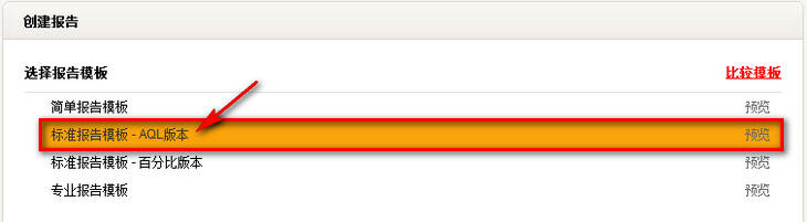 点击“标准报告模板(AQL抽样)”。