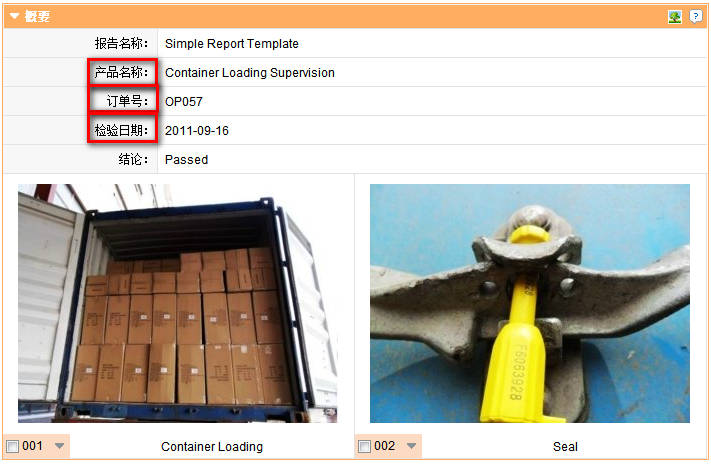 概要中主要填写报告的基本信息,包括品名、订单号及检验日期。