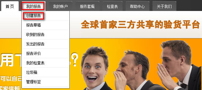 登录后,把鼠标移到顶部菜单中的“我的报告”,弹出菜单后点击“创建报告”