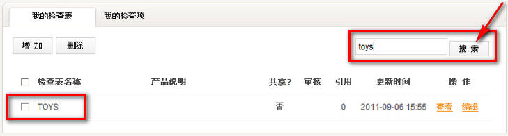点击“搜索”,搜索你已经填好的具体的检查表。