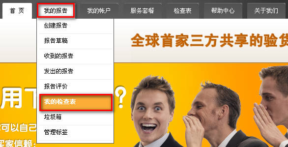 登录后,把鼠标移到顶部菜单中的“我的报告”,弹出菜单后点击“我的检查表”。