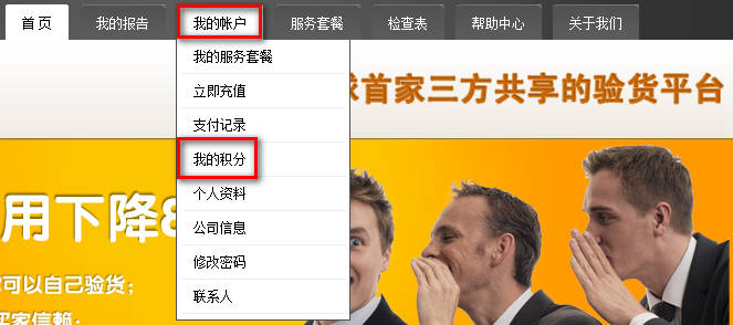 登录后,把鼠标移到顶部菜单中的“我的账户”,弹出菜单后点击“我的积分”。
