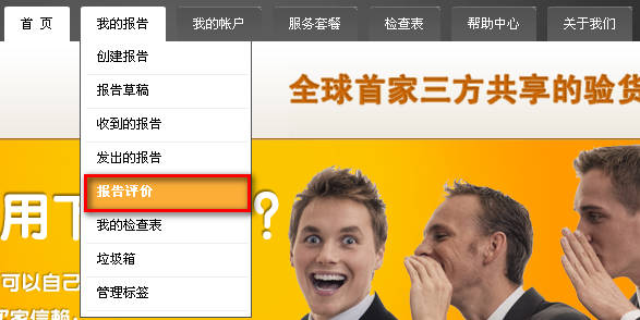 1.登录后,把鼠标移到顶部菜单中的“我的报告”,弹出菜单后点击“报告评价”。