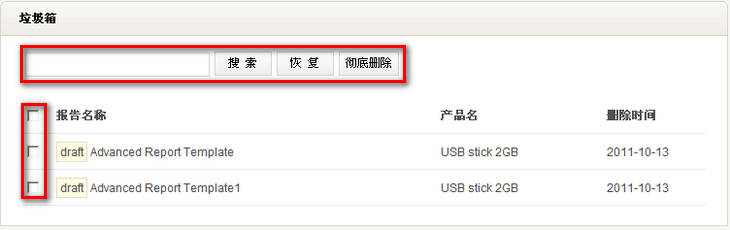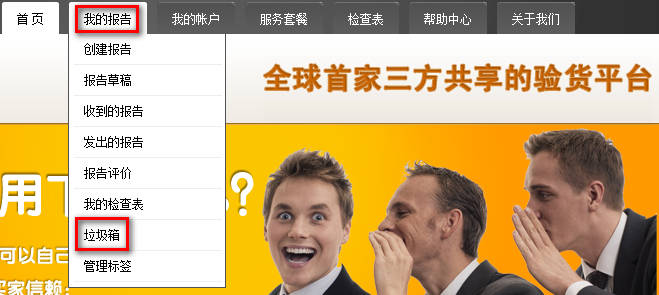 把鼠标移到顶部菜单中的“我的报告”,弹出菜单后点击“垃圾箱”。