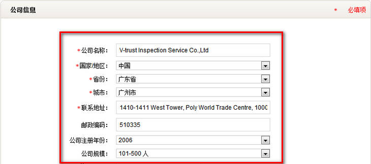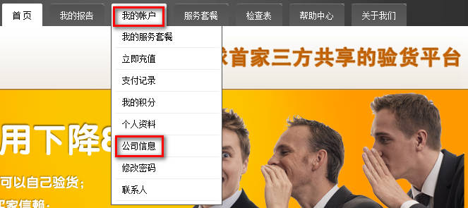 登录后,把鼠标移到顶部菜单中的“我的账号”,弹出菜单后点击“公司信息”。